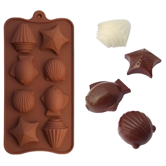 Silicone Seashell, Fish, Whelk and Starfish Chocolate Mould 8 Cavity | Melting Star and Fish Shape Chocolate Mould (Star Fish)