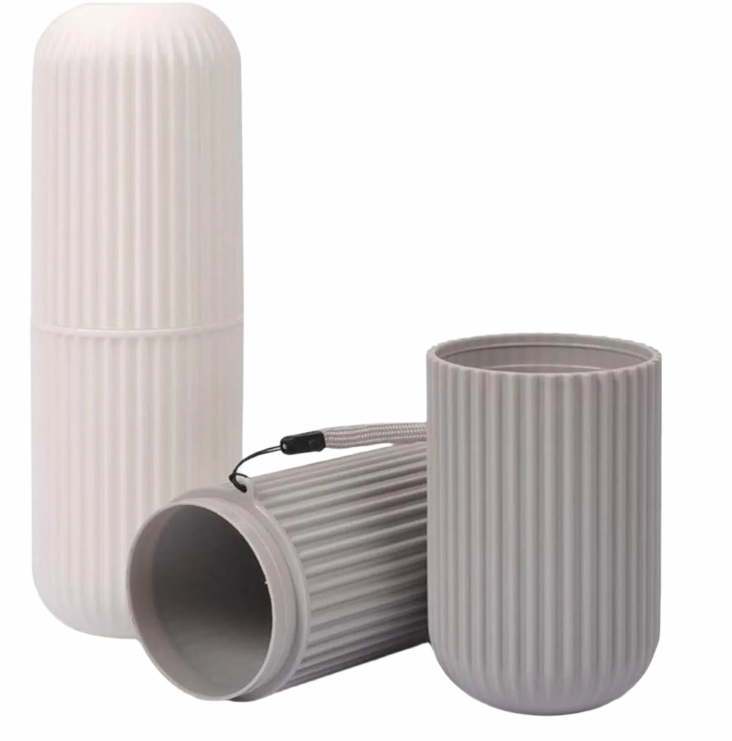 Keep your toothbrush safe and sanitary with this sleek, capsule-shaped toothbrush holder set. Designed with a modern, ribbed texture and crafted from eco-friendly, BPA-free plastic, these travel cases are both functional and stylish. Each case holds one standard-size toothbrush and toothpaste tube, protecting them from moisture and dust while on the go. Lightweight and compact, these holders are the perfect travel accessory whether you're off to the office, gym, or on a long vacation. Comes in a 3-pack featuring blue, white, and grey to suit every style or household need.